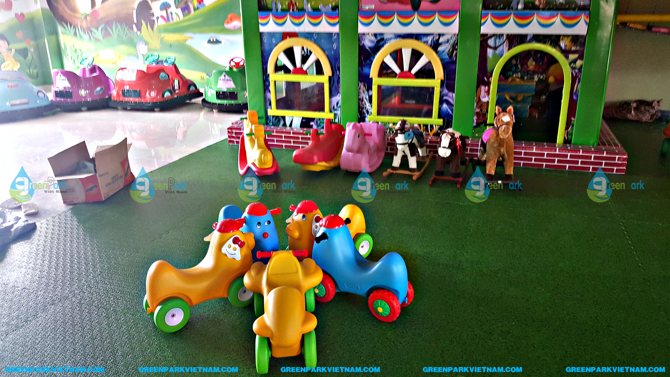 Khu vui chơi bao gồm rất nhiều hạng mục như: Khu nhà liên hoàn, khu xe điện đụng, khu máy game, khu tàu khỏa, đu quay, khu sàn nhún cỡ lớn,...